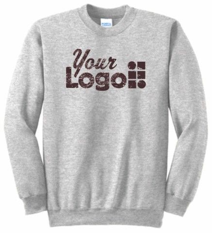 Youth style, This traditional crewneck is perfect for the gym or relaxing. 7.8 ounce, 50/50 cotton/poly fleece, Coverseamed crewneck, arm seams and waistband, Spandex in collar, cuffs and waistband, Set in sleeves. sku: PC90Y Youth Ultimate Crewneck Sweatshirt, brand: Port & Company. Comes with 1-color logo printing on front, back or sleeve (1-location only); 6 minimum, turnaround time 8-12 days